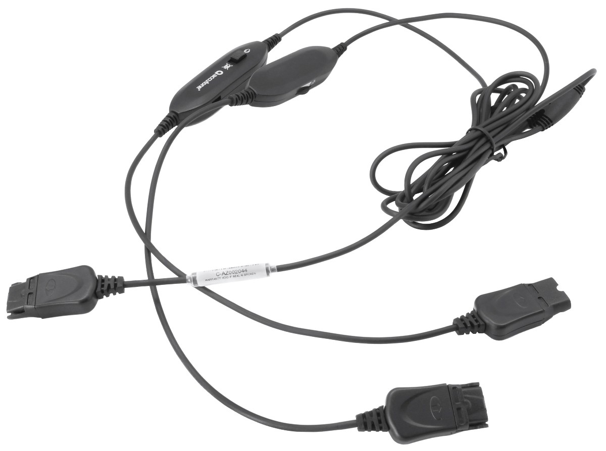 Шнур-разветвитель DT8 Y-cord Training cord предназначен для подсоединения сразу двух гарнитур с разъемом QD к телефонам или компьютеру через соответствующий QD переходник. Основное предназначение этого шнура - использование двух спаренных QD гарнитур для обучения операторов-стажеров колл-центра.  На каждую из двух подключаемых гарнитур предусмотрен регулятор громкости и кнопка отключения микрофона.